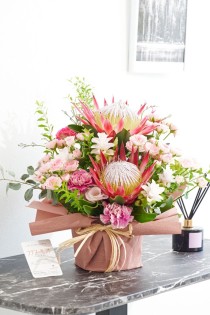 [AM337]アレンジメントフラワー キングプロテアとおまかせ花材 キュート(Lサイズ)